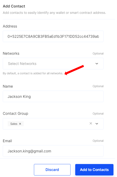 Unless otherwise specified, contact information will be systematically integrated across all available networks by default.